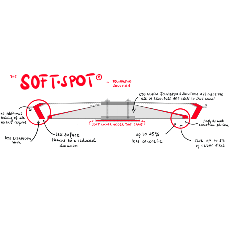 The SOFT-SPOT® Solution The SOFT-SPOT® was developed by CTE Wind’s engineering team and is implemented in various countries around the world. This foundation design optimizes the use of resources and helps to save concrete, reinforcement bars and less surface for…